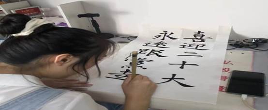 活动伊始,王熠凡以“喜迎二十大,永远跟党走”为主题带领支部成员探寻历次党代会的足迹,引导广大党员重温党的伟大奋斗历程,迈出“永远跟党走”的坚定步伐。员工第五支部全体成员集体朗诵《可爱的祖国》,献礼二十大。最后,支部王越同志展示了自己为喜迎二十大创作的书法作品。