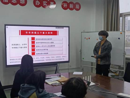 学习结束后,支部成员也分别简述了对二十大精神的学习心得,提出自己也将相应党的号召,积极从自身出发,从小事做起,坚持党的全面领导、坚决拥护中国特色社会主义的发展、贯彻团结奋斗精神,在日常学习生活中,努力做到最好,为同学们起到模范带头作用。