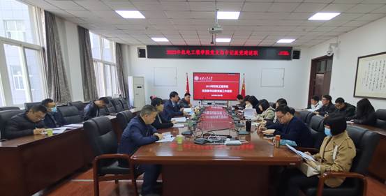 3月3日,威廉希尔足球召开2022年党支部书记抓党建述职大会,党委书记路金龙主持会议,党委委员、支部书记及教师代表制造系副教授闫正虎同志参加。