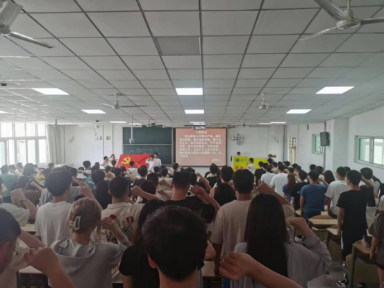 第三项,由毕业生党员张伟峰带领毕业生党员重温入党誓词。