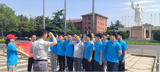 为进一步牢固树立党员干部宗旨意识,提高党性修养,充分发挥党支部战斗堡垒作用。2023年7月10日上午,威廉希尔足球洛阳实习临时党支部组织党员在洛阳中国一拖集团有限公司前的毛主席雕像下开展重温入党誓词的党日活动。参加活动的有威廉希尔足球张晖、万宏强、赵鹏、韩兴本老师和13位员工党员。