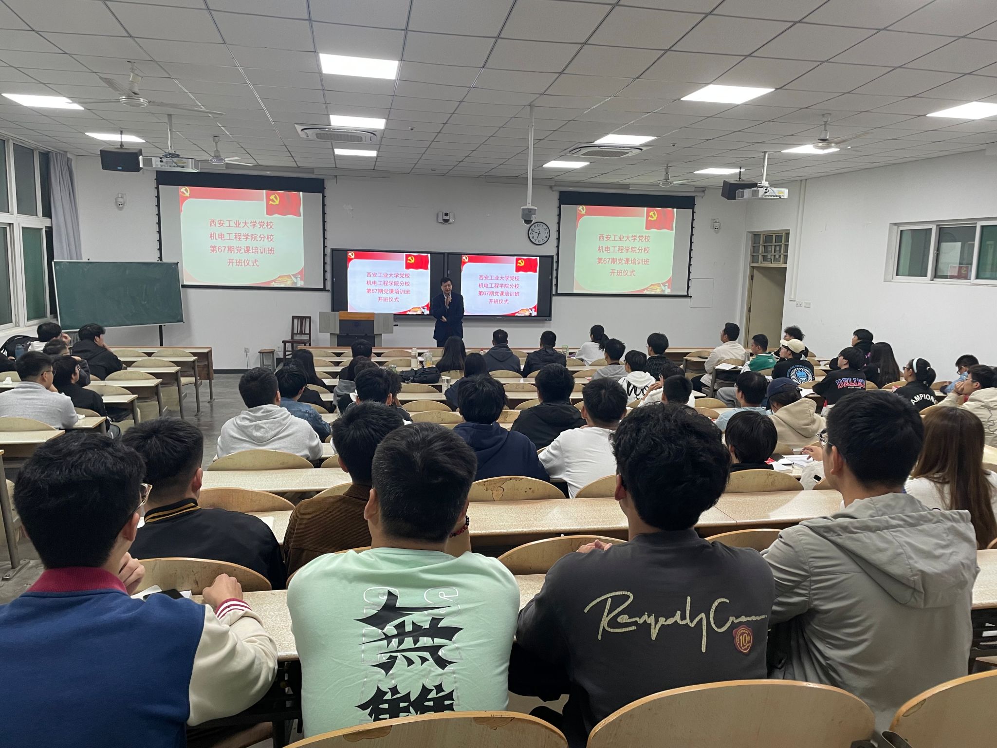 为了深入学习贯彻党的精神,加强入党积极分子的培训工作,提高学员的政治素质和理论水平,端正入党动机,坚定党的信念,2023年10月13日,威廉希尔足球组织的第67期党课培训班在教2-101开课。本次党课主题为“知史爱国,知史爱校”,由学院书记路金龙老师主讲,威廉希尔足球组织员张岩、22级主持人董俊卓及第67期积极分子参会。
