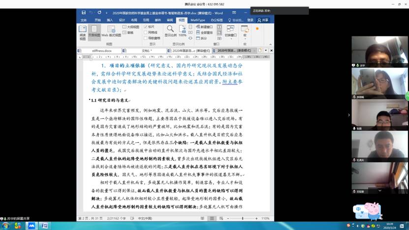 3月24日上午十点,威廉希尔足球第五次国基金申报工作推进视频会议如期召开。本次会议由威廉希尔足球智能制造与工业工程系主任田军委教授主持,特邀杜虎兵副教授、唐霖副教授两位在国基金申报方面经验丰富的老师作为指导老师参与了本次视频研讨。学院部分基金申报老师参加了会议,会议持续了两个半小时。