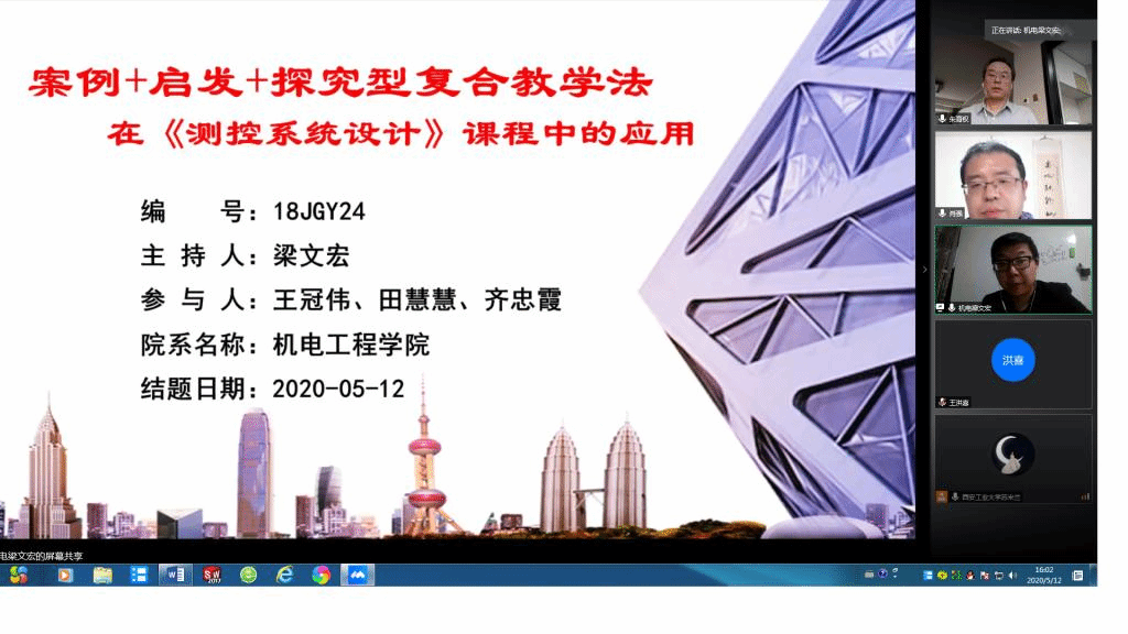 为了做好远程互动式视频答辩,威廉希尔足球克服了软件和网络不稳定问题,提前做好各类准备工作,以保证视频答辩的顺利进行。虽然是远程互动式视频答辩,但是线上与线下答辩的流程、要求不变,威廉希尔足球教学秘书将所有材料都做了数字化处理,提前将电子版结题答辩材料发给专家审阅,保证线上答辩质量不掉线。整个答辩过程均录屏截图,作为答辩记录留存,坚决确保答辩的公开性和真实性。在答辩过程中,项目负责人分别介绍了项目的预期目标和实际研究进展情况,并围绕项目的创新点、实际教学效果、存在问题和改进措施等做了较详细的汇报。根据项目负责人的汇报,专家组分别进行了问题质询,与项目组进行了充分且深入的交流,并给出了进一步完善的意见和建议。