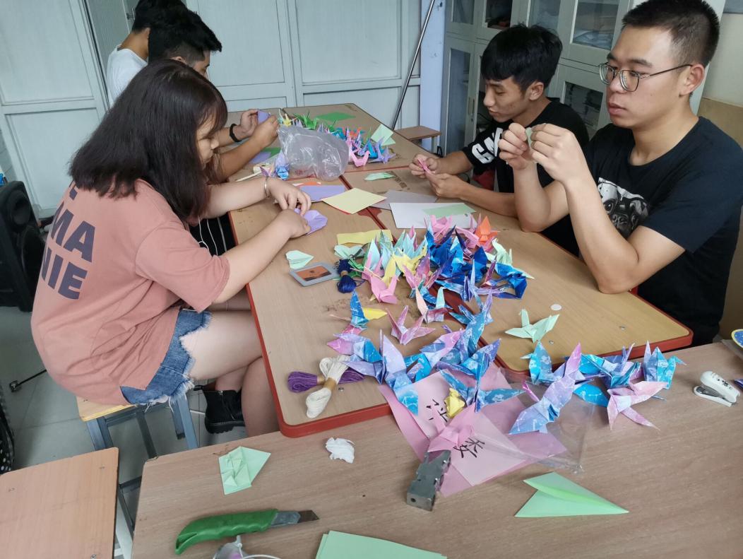 (团学组织成员亲手折出的千纸鹤)