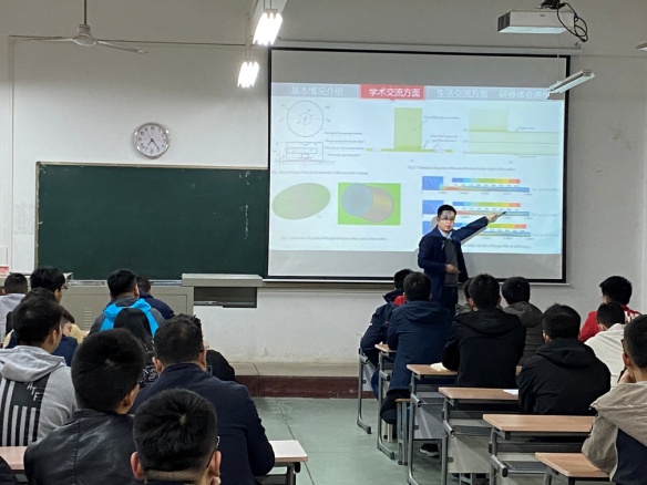 卢志伟首先就他在英国访学的基本情况以及生活情况进行了简短的介绍。接着,卢志伟介绍了在切斯特大学的交流与研究情况,就重点开展的“空气静压轴承的气膜流场润滑特性研究”进行了学术交流,主要从事流体润滑技术、精密与超精密制造技术、GPU与CPU异构并行数值计算、精密机械设计技术与产品开发等方面的研究。本次学术讲座主要围绕空气静压轴承的多尺度微振流场润滑机理展开,探索多孔集成节流孔出口处气膜流态的转捩规律,揭示多尺度气膜流场微振动形成机理和抑制方法等。最后,卢老师与大家交流了在国外的相关研修体会与感悟。在学术讲座后,卢老师与在场的师生进行了互动讨论。