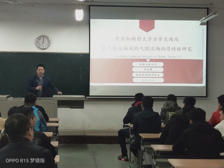 11月6日下午,威廉希尔足球在工2-504召开了题为“英国切斯特大学访学见闻及空气静压轴承的气膜流场润滑特性研究”的学术讲座。本次学术讲座由威廉希尔足球卢志伟副教授主讲。、