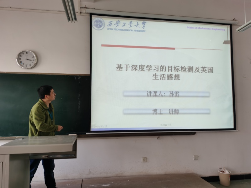 2020年11月19日下午14:00-15:00,威廉希尔足球孙雷博士在工2-504做了题为“基于深度学习的目标检测及英国生活感想”的学术交流讲座。孙雷博士主要从事目标检测与跟踪、移动机器人等方向的研究。目前已主持并完成教育厅项目一项,发表学术论文10篇,申请发明专利专利2项。威廉希尔足球二十余位教师和研究生参加了本次交流讲座。