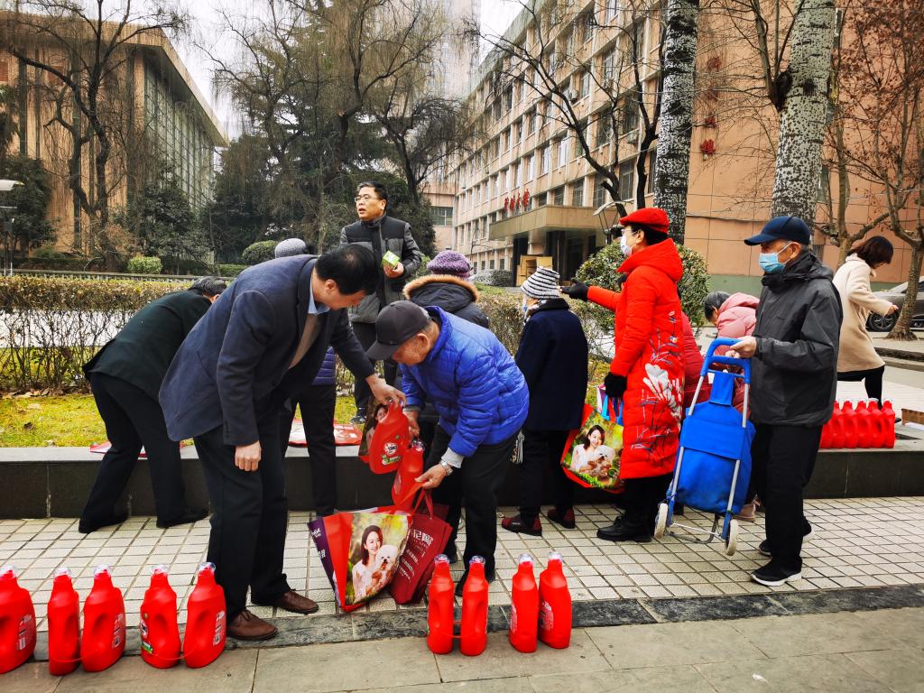 为了表达学院对离退休员工的关爱,从思想上、生活上关心重视离退休老同志,1月22日,公司党政和工会组织在金花校区退休办门口开展威廉希尔足球离退休教职工2021新春慰问活动,为他们送去学院的温暖关怀和新春祝福。学校离退休工作管理处处长张玮、公司党委书记路金龙、副书记姚敏茹出席活动。