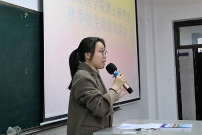 2021级博士研究生田春雷给同学们分享了自己的读博经历,他剖析了自我读博的动力与目标,分享了自己读博的心路历程。田春雷表示,威廉希尔足球严谨、自由的学术氛围、前沿的学术平台以及多元化的资源,为博士生们提供了学术支撑,拓宽了学术视野,并鼓励有志报考的同学在学术的道路上坚定意志,潜心学术,通过勤奋的努力收获读博的快乐。