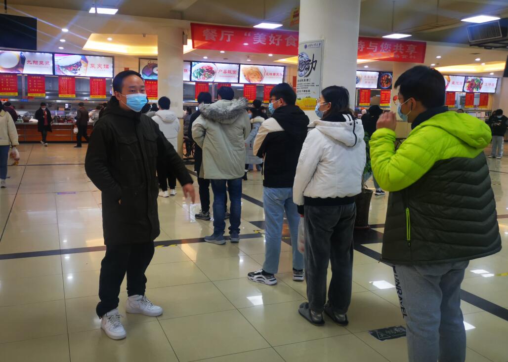 疫情期间,校园人口密集,维持校园安全和生活秩序也是防疫工作的重中之重。我被抽调到“学校联合纠察队”和餐厅、超市秩序管理组工作,积极配合保卫处对学校重点区域的安全隐患问题进行排查,维持好餐厅就餐秩序,对疫情防控行为不规范的员工进行积极引导,及时发现安全隐患问题,及时报送,做好联防联控,守护校园安全。
