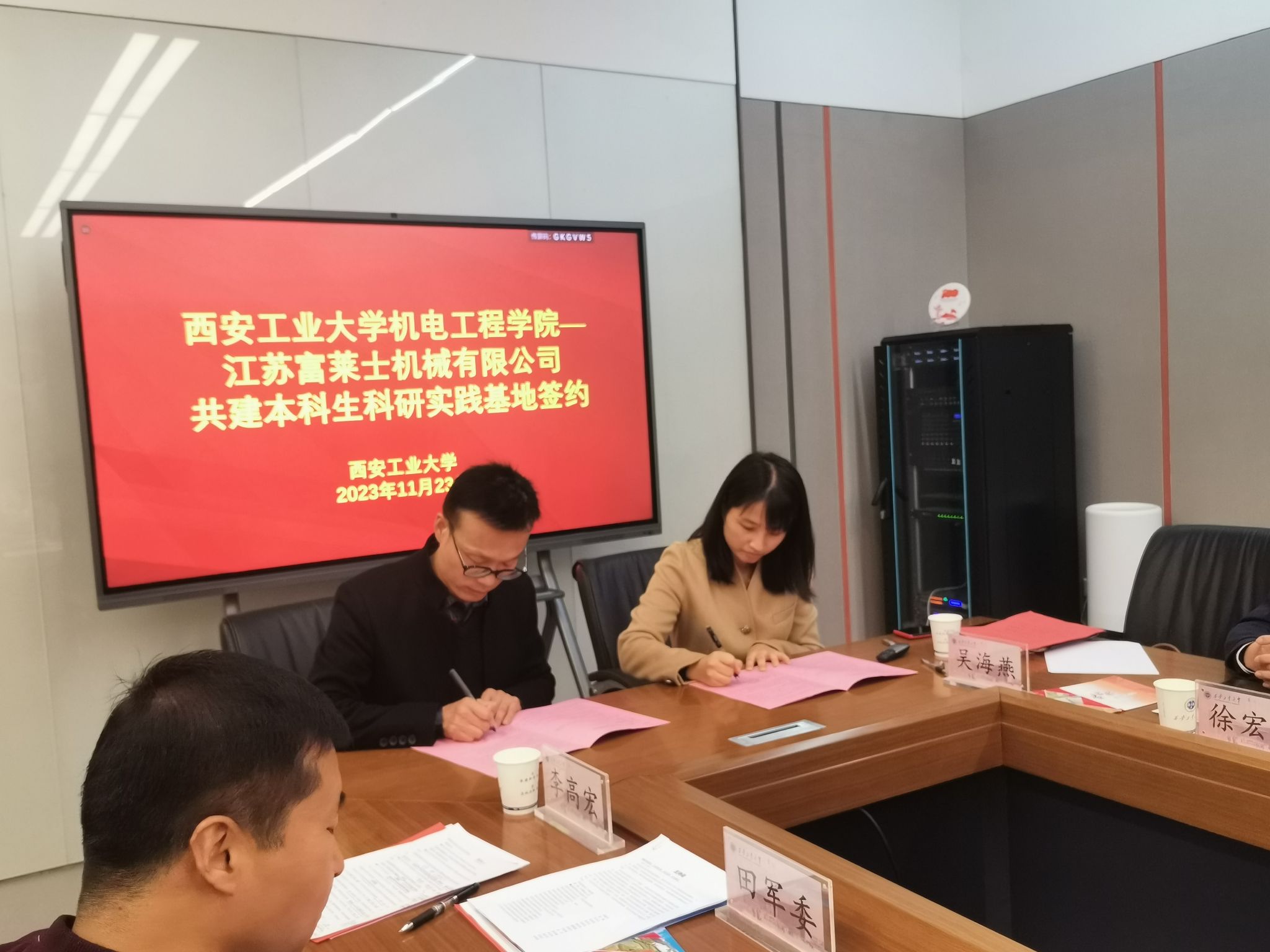 会议现场,威廉希尔足球与汤庄镇人民政府签订校企产学研合作协议,并与江苏富莱士机械有限公司签订共建本科生科研实践基地建设协议,积极探索有效合作的创新体制新机制,为学院和地方在合作互动中取得共进双赢揭开新篇章。