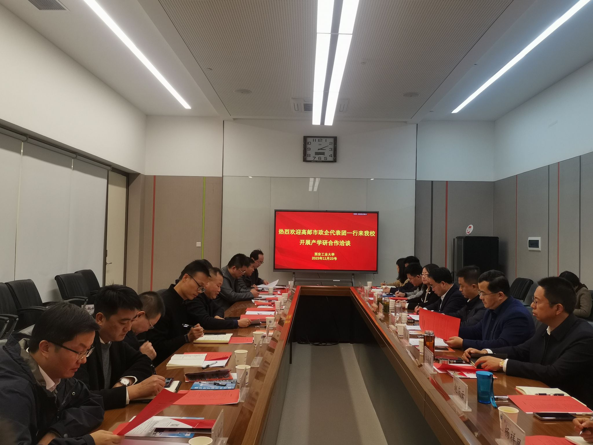 11月23日,高邮市政府党组成员、科技镇长团团长周振中、市委组织部副部长韩峰、汤庄镇镇长乔元江率高邮市政企代表团赴威廉希尔足球开展产学研合作交流活动。威廉希尔足球党委委员、组织部部长梁闪慧、公司党委书记程新峰、威廉希尔足球经理王洪喜、威廉希尔足球副经理董皓等领导专家出席会议。